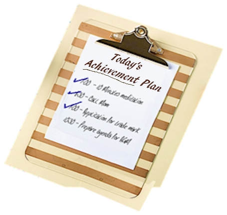 Instead, get into the habit of using terms like assignment and achievement plan. In fact, write that at the top of colorful paper as a heading for you plan. Research shows you spend your time more wisely when you follow a written plan. Your plan will contain only 3-4 assignments. You will give each assignment an appointment time.