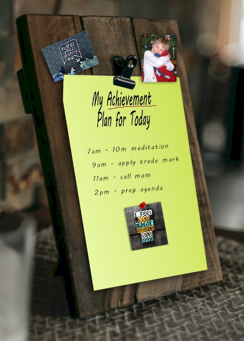 First, change the image you will envision when you look at your plan. Start with vocabulary. Instead of words like list or task, get into the habit of using terms such as assignment and achievement. In fact, write the words My Achievement Plan at the top of colorful paper as a heading for you plan. Attach a photograph or image that has significance to serve as motivation, remind you what you are working toward, or what matters.
